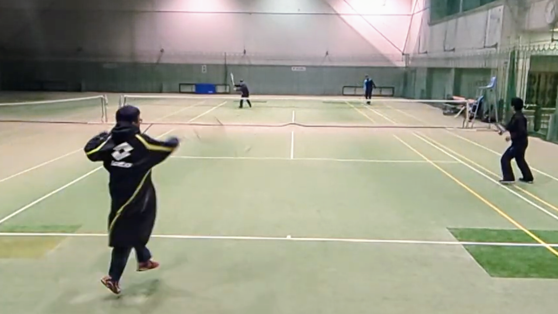 常時コートを定点撮影し、動画は後日会員だけで共有。自分のプレイを客観的に省みることで、最短での上達につなげています。