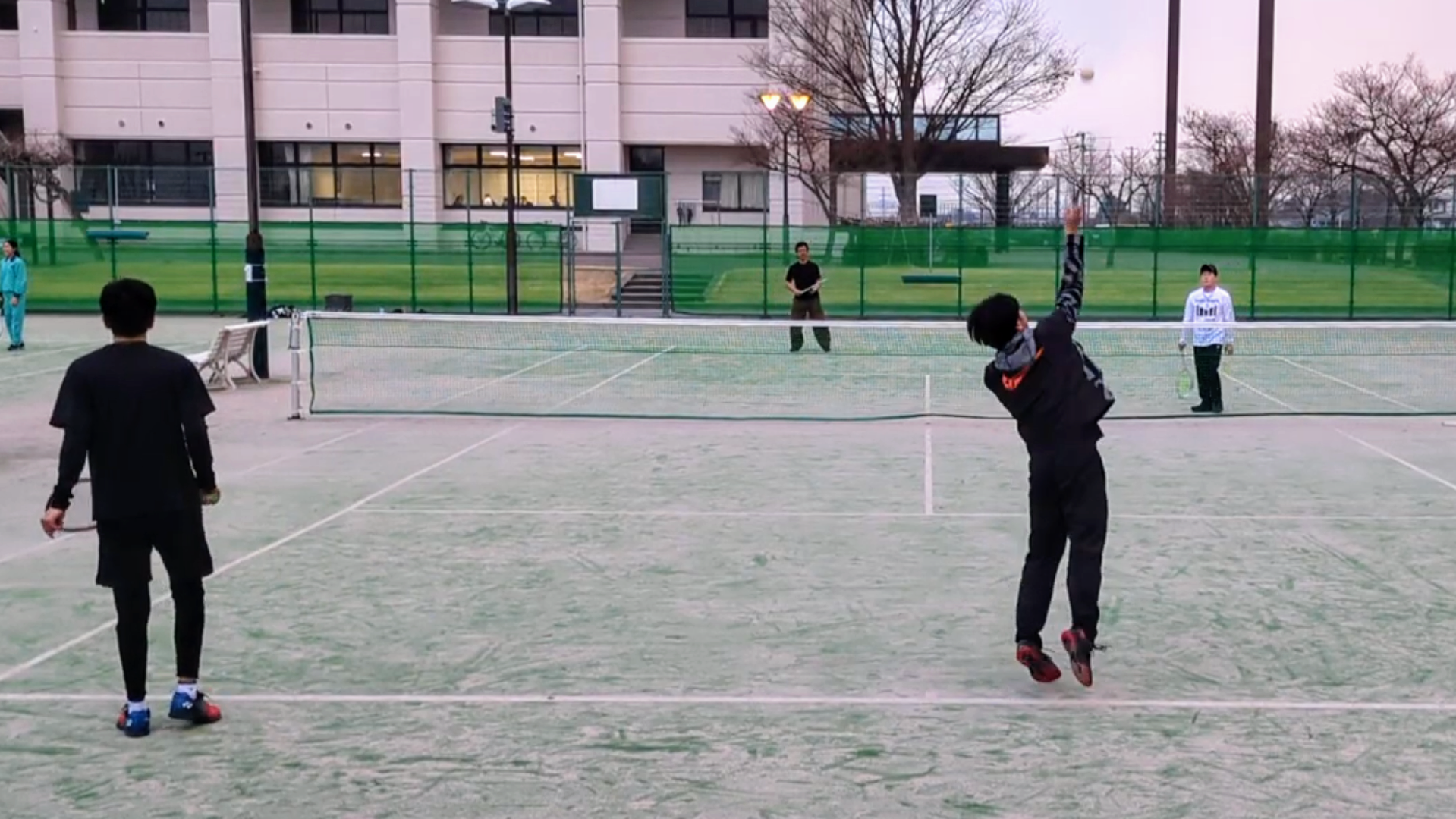 ソフトテニスはボールが柔らかいため万が一体に当たってしまっても安心なスポーツですが、ケガや事故を未然に防ぐため安全第一で。